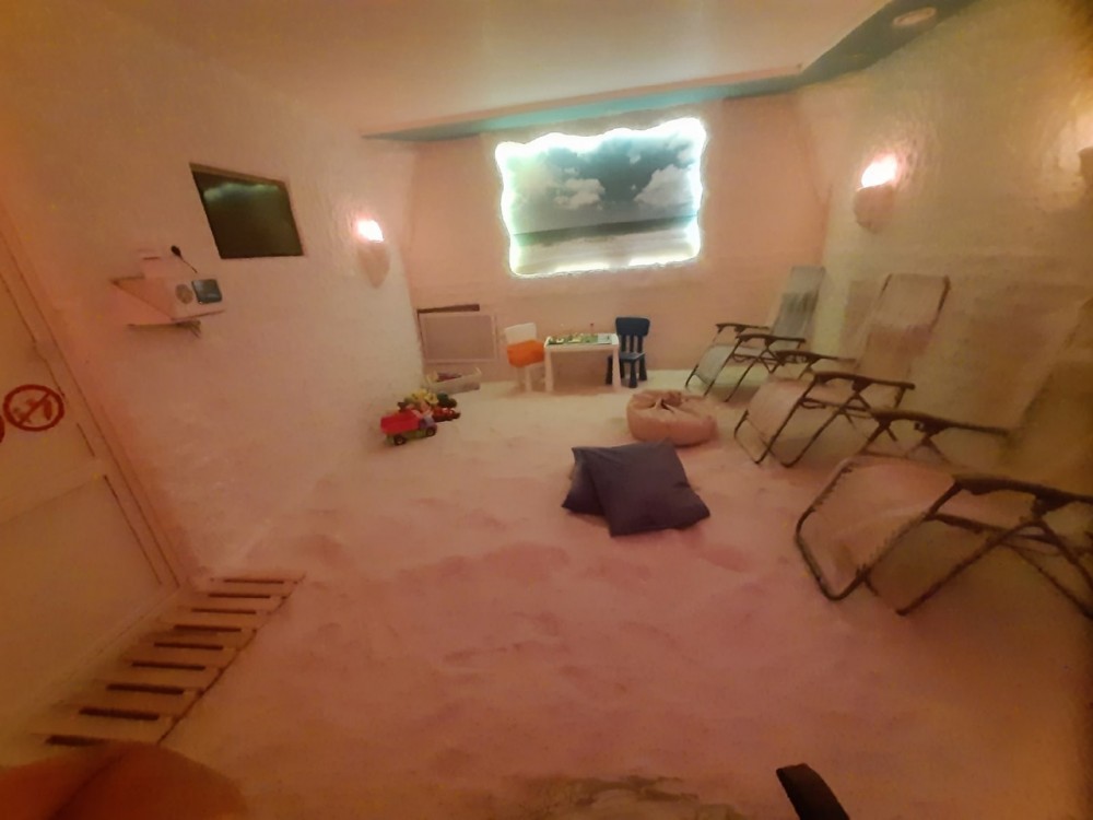 Соляная комната, или галокамера оборудована специальным образом. Особого внимания заслуживает ионный состав атмосферы в соляной комнате. Тщательно подобранный набор химических элементов способствует повышению работоспособности человека и нейтрализует возможность жизнедеятельности бактерий и патогенных микроорганизмов. Курс процедур в соляной комнате по эффективности сравним с длительным пребыванием на морском курорте. Положительные изменения в состоянии отмечаются уже через несколько дней после начала оздоровительных сеансов. Это объясняется активным насыщением тканей полезными веществами, ускорением обменных процессов и выведением из организма токсических соединений.