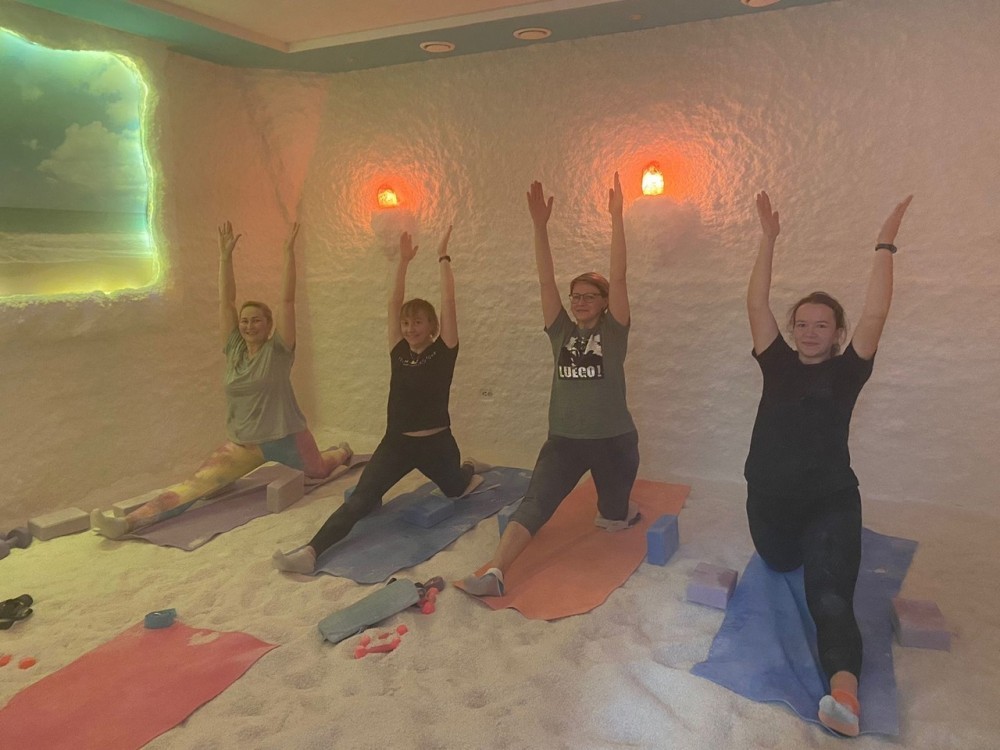 Йога в соляной пешере-это что то замечательное! Приятная музыка, полумрак, запах соленого моря. Полное погружение в состояние покоя.