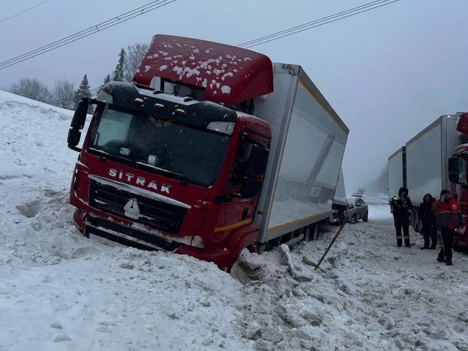 По предварительным данным, цепочка столкновений началась с резкого торможения грузовика SITRAK, двигавшегося в потоке. Следовавший за ним второй большегруз той же марки попытался избежать удара и съехал в кювет.