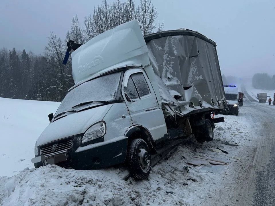 Массовое ДТП с четырьмя грузовиками произошло на трассе в Вологодской области