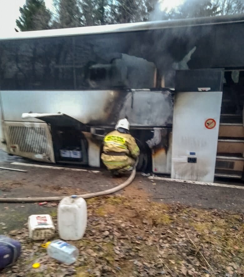 В Архангельской области загорелся автобус с пассажирами из Великого Устюга