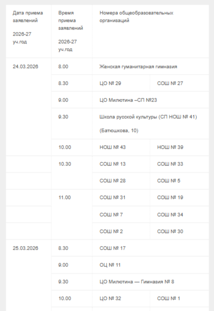 Сегодня, 24-го марта череповецкие школы начали прием заявлений на зачисление детей в 1-е классы на 2026-2027-й учебный год. Приемная кампания будет идти в соответствии с утвержденным графиком: