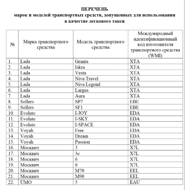 В настоящее время, после актуализации, перечень состоит из 22-х машин. Речь о следующих транспортных средствах: