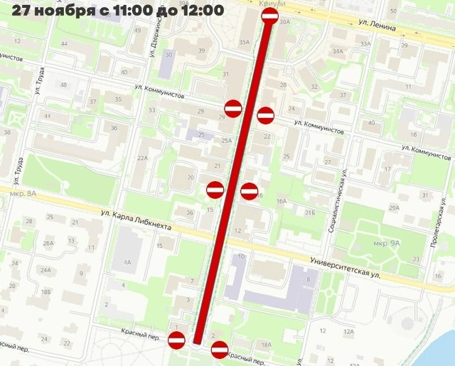 Департамент ЖКХ города предупредил водителей об ограничение движения 27 ноября. Советский проспект в Череповце закроют для транспорта от Воскресенского собора до улицы Ленина