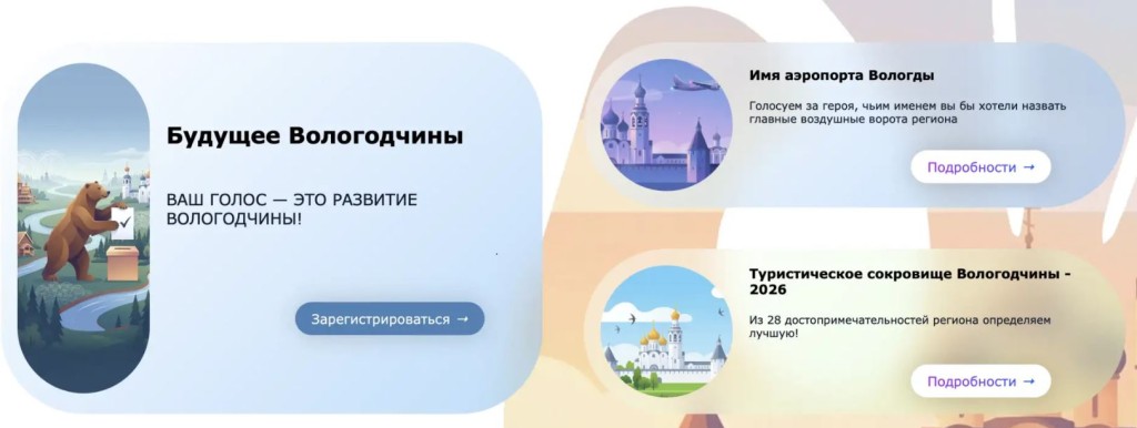2. Найдите голосование «Будущее Вологодчины» и нажмите «Зарегистрироваться».