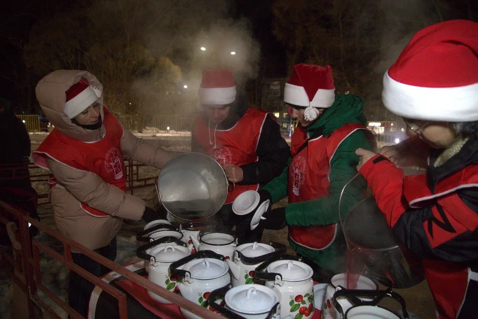 Событие ознаменовалось необычным гастрономическим экспериментом: прямо на площади приготовили тысячу литров взвара из фруктов и пряных трав. Горячий напиток стал не только угощением для гостей, но и своеобразным символом приближающихся праздников.